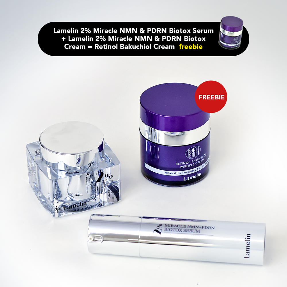 Purchase (1) 2% NMN PDRN BIOTOX CREAM + (1) 2% NMN PDRN BIOTOX SERUM and get 1 RETINOL BAKUCHIOL WRINKLE CREAM for FREE