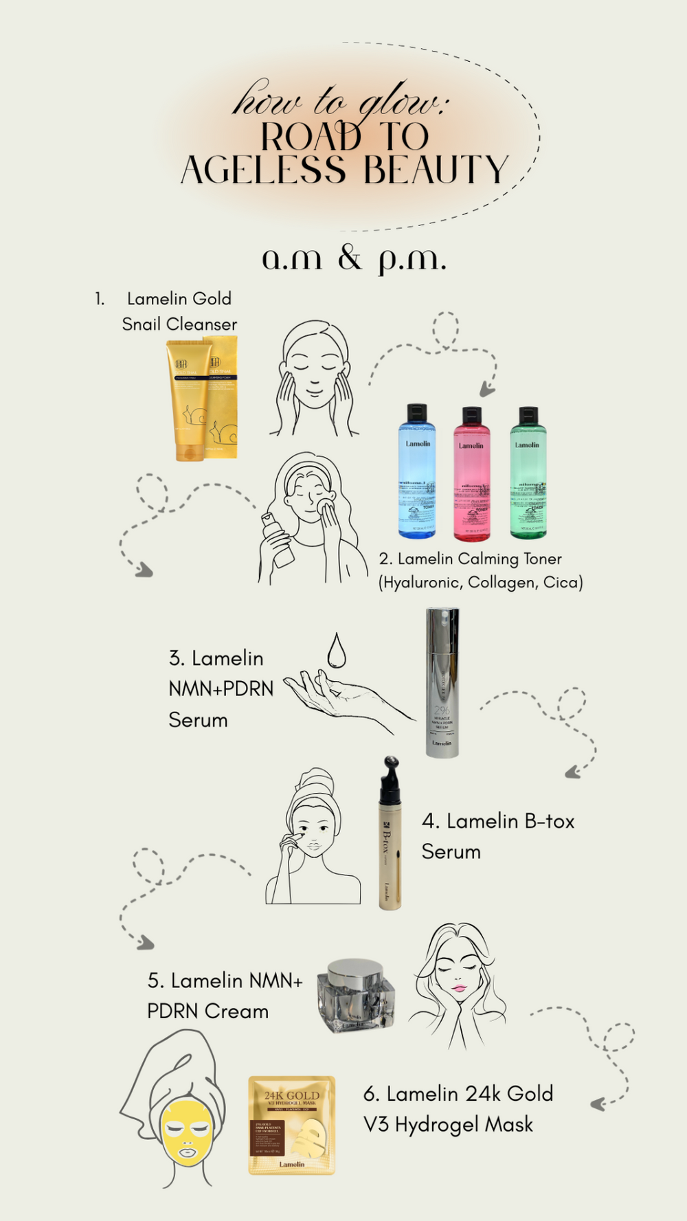 Niacinamide, Nicotinamide Mononucleotide (NMN) + Sodium DNA (PDRN), Panthenol, Allantoin, Sodium Hyaluronate, Glycerin, Adenosine, Centella Asiatica, Glutathione, Chrysanthemum, Rice Bran